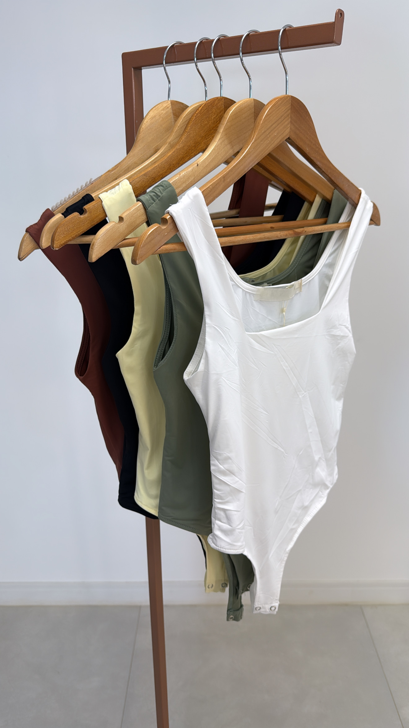 Body Ísis é um modelo básico e elegante, com decote reto, alcinhas largas e fechamento por botões na parte inferior para mais praticidade. Confeccionado em tecido confortável que se ajusta ao corpo, perfeito para compor looks versáteis no dia a dia.