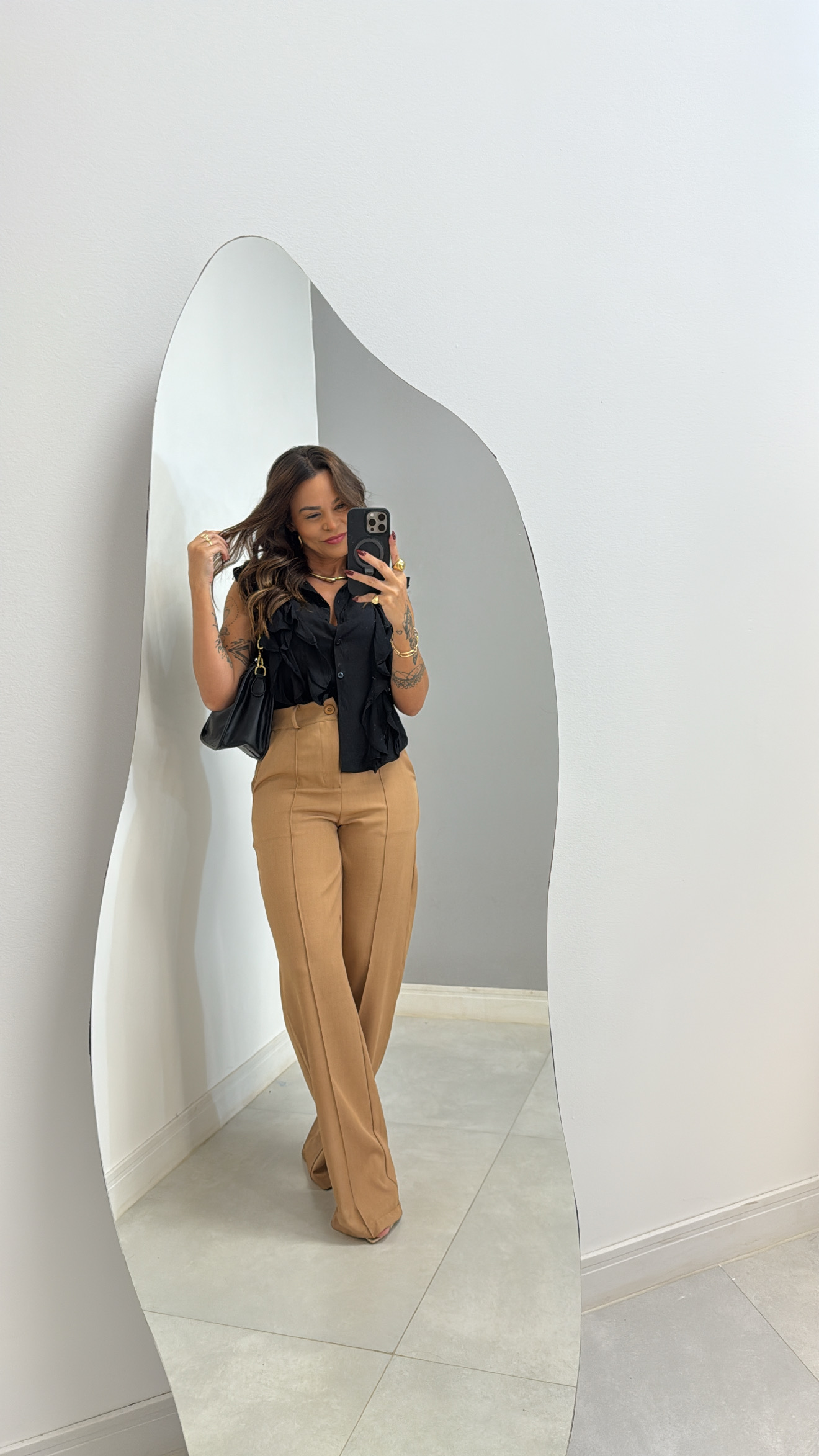A camisa Lua é o equilíbrio perfeito entre romantismo e elegância. Confeccionada em tecido leve e fluido, possui babados delicados na parte frontal e gola clássica, que trazem charme e sofisticação ao visual. Versátil, combina facilmente com peças de alfaiataria ou jeans para produções modernas e femininas.