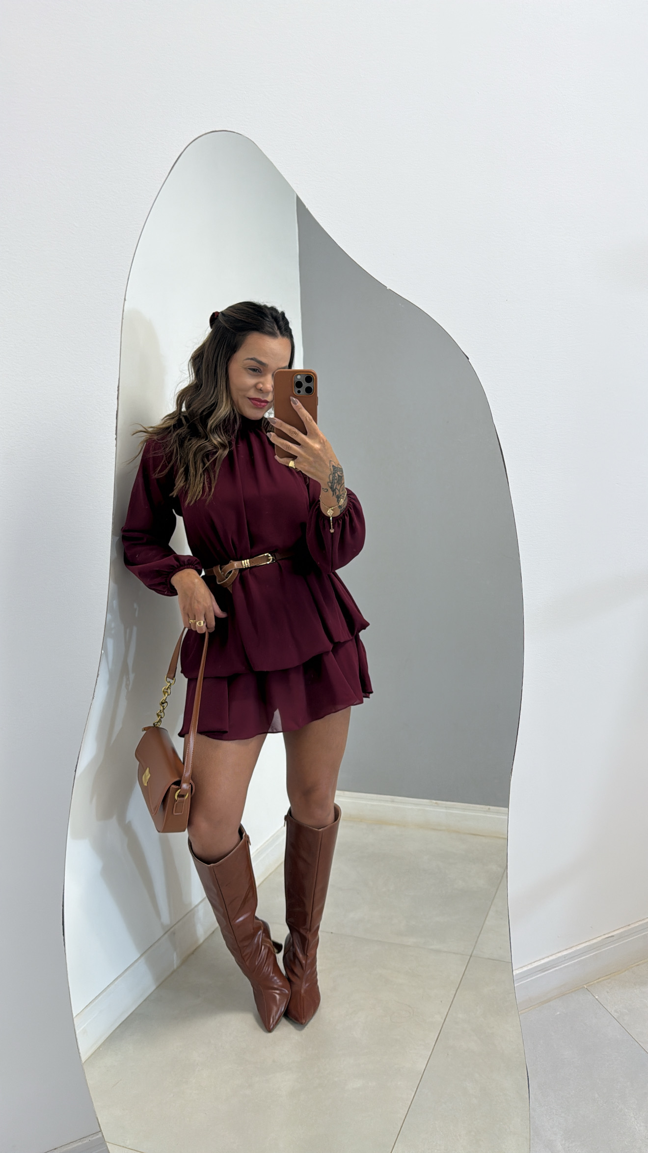 O Vestido Marta é um modelo moderno e elegante, com caimento leve e soltinho que proporciona conforto e movimento. Possui gola delicada, mangas longas e comprimento curto com camadas, trazendo um toque sofisticado ao look. Uma peça versátil, perfeita para composições estilosas em diversas ocasiões.